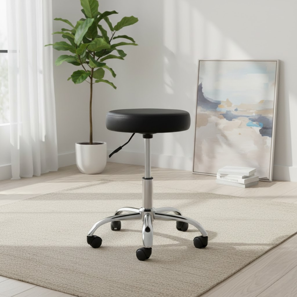 Description: ✦Generously Sized 17” Diameter Seat: Spacious and supportive for all-day comfort during detailed pedicure services. ✦Extra-Thick Cushioning: Plush padding provides superior comfort and reduces pressure during extended use. ✦Adjustable Height: 14” – 16”: Ideal for pedicure workstations—find your perfect working height with smooth manual adjustment. ✦Sleek, Low-Profile Design: Compact yet sturdy, perfect for salons that prioritize both form and function.