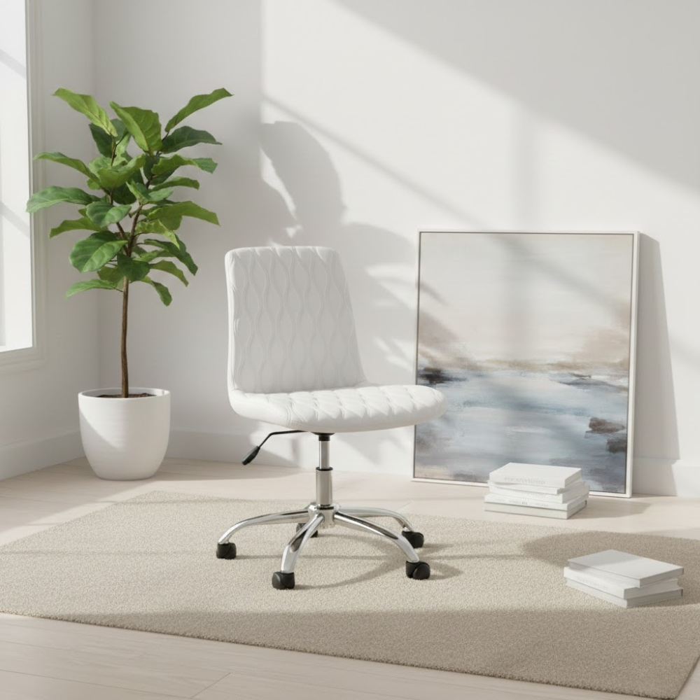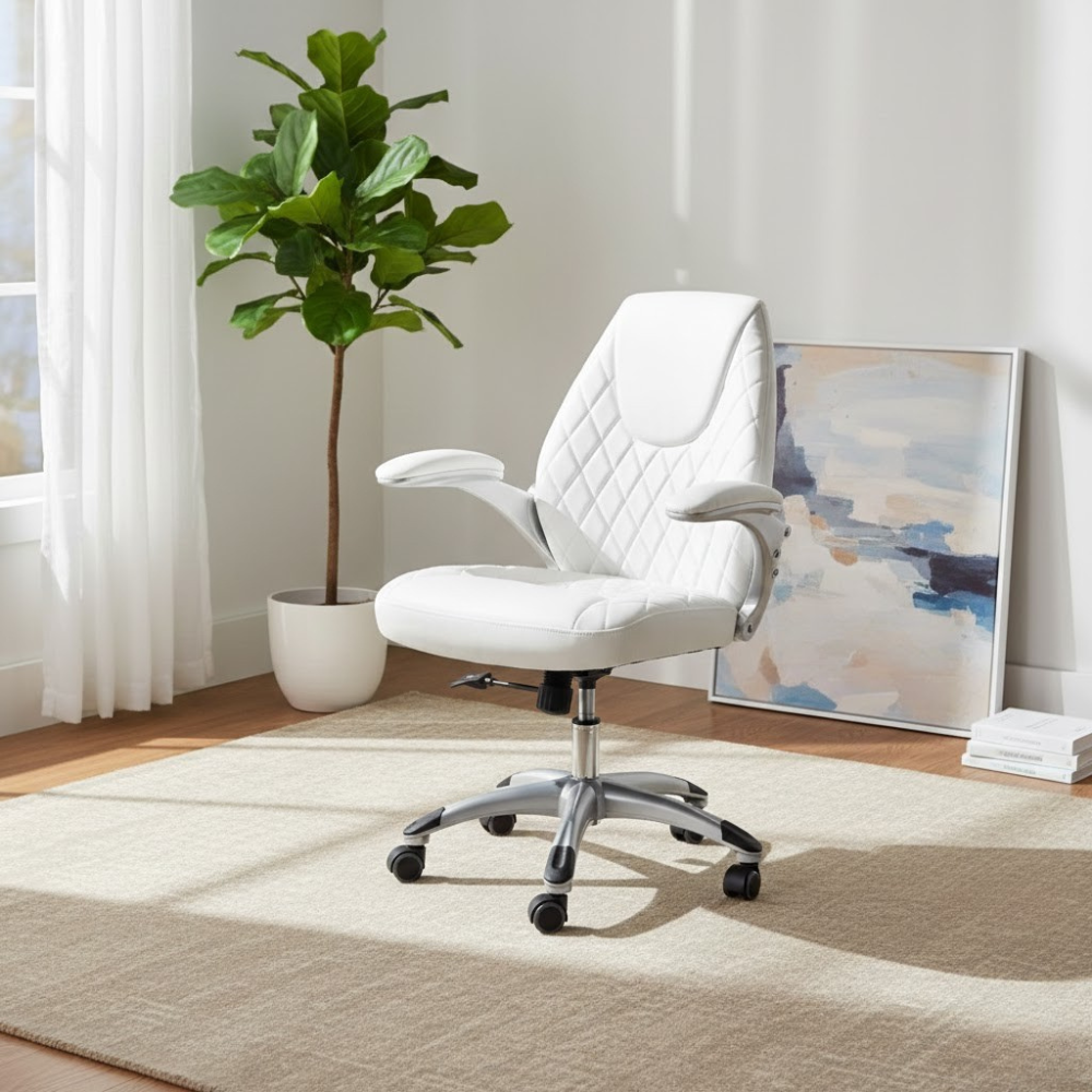 Description: ✦Ergonomic Saddle Seat – 14” x 16”: Promotes healthy posture and reduces lower back strain during long working hours. ✦Adjustable Height: 19” – 24”: Smooth hydraulic lift mechanism allows you to customize your seat height for any workstation. ✦Chrome Star Base with 5 Caster Wheels: Durable, stylish, and ultra-stable—glides effortlessly across all floor types. ✦Compact & Functional Design: Perfect for tight workspaces while offering full mobility and support.