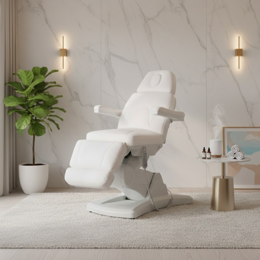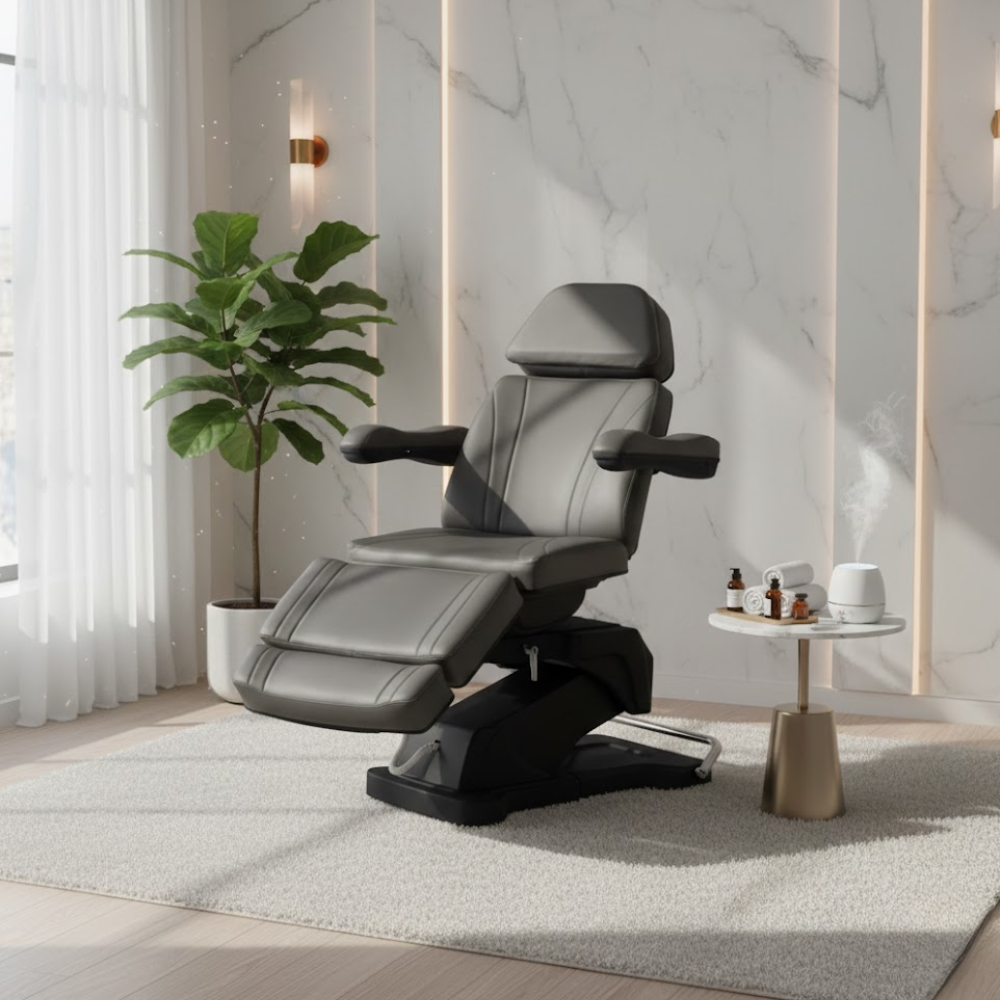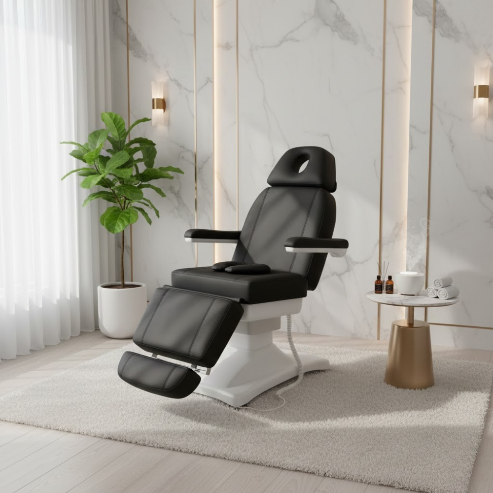 Description: ✦Heavy-Duty Support – Up to 350 lbs Capacity: Durable frame and premium engineering ensure stability and safety for all clients. ✦Radi + Fully Electric 4-Motor System: Effortlessly control height, backrest, leg-rest, and seat tilt—maximize precision and comfort with zero strain. ✦Multi-Position Functionality: Adjust from a full 90° seated position to a completely flat bed—ideal for massage, facials, injections, and body treatments. ✦Reversible & Removable Armrests: Customize the setup to suit your service—whether you need full access or added support. ✦Adjustable & Extendable Headrest: Ensures perfect alignment and added comfort across a range of client heights. ✦Mobile & Easy to Move: Built-in mobility system allows effortless relocation and flexible space management.✦4 Independent Electric Motors: Effortlessly control the height, backrest, leg-rest, and seat tilt with precision—no manual adjustments required.