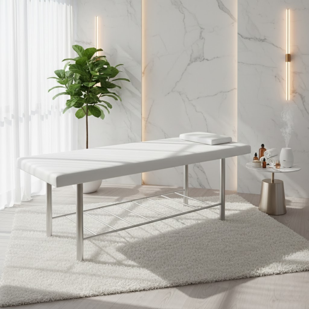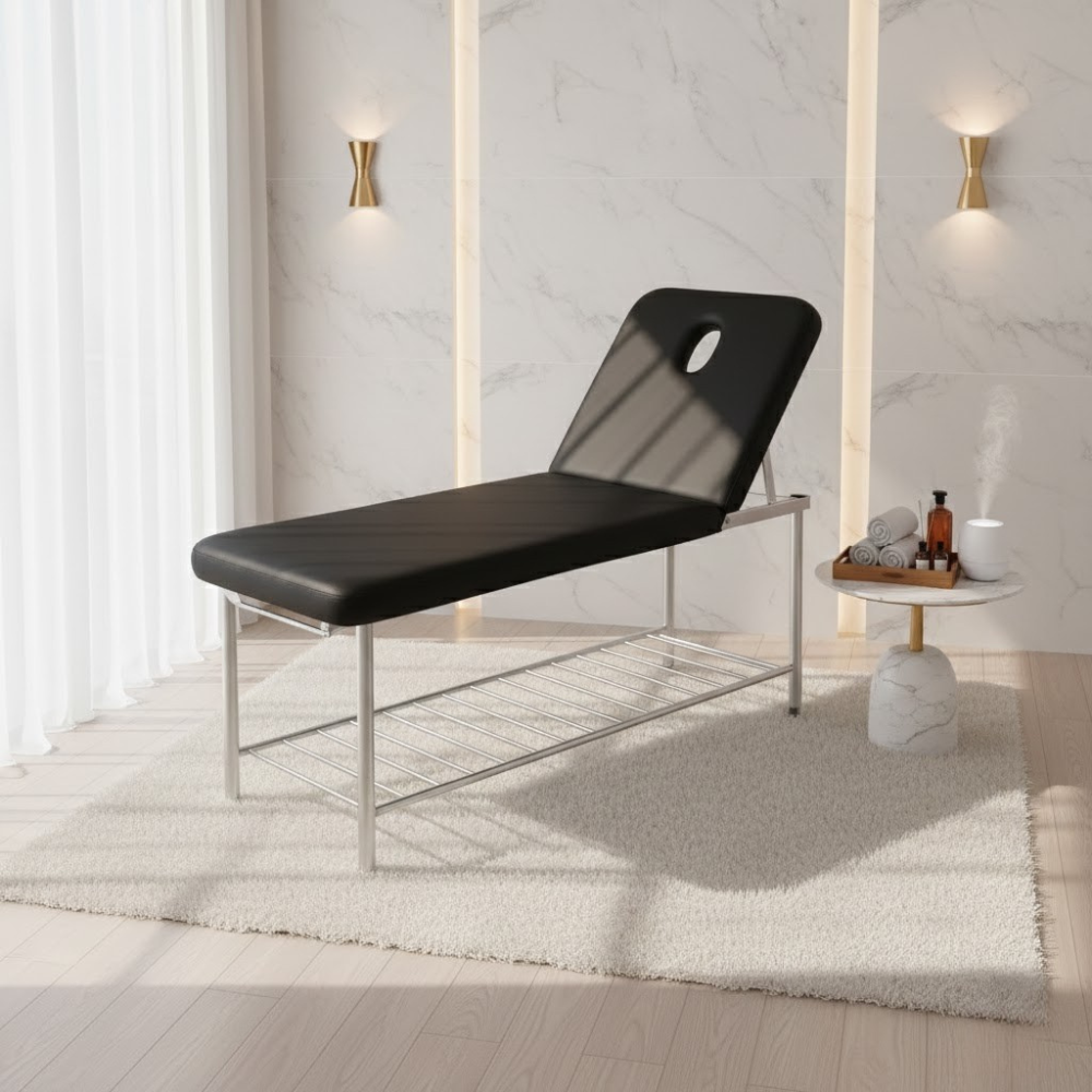 Description: ✦5” Thick Foam Padding: Ultra-soft, high-density cushioning offers superior comfort and support for every treatment session. ✦Durable PU Upholstery: Easy to clean and built to last—resists oils, moisture, and daily wear while maintaining a sleek, professional look. ✦Removable Face Pillow: Provides flexible positioning and added comfort for face-down treatments; easy to attach and detach as needed. ✦Optional Adjustable Headrest: Customize your setup—headrest sold separately for those seeking extra versatility and ergonomic support. ✦Stable & Sturdy Construction: Built with a reinforced frame to ensure maximum weight support and long-term durability.