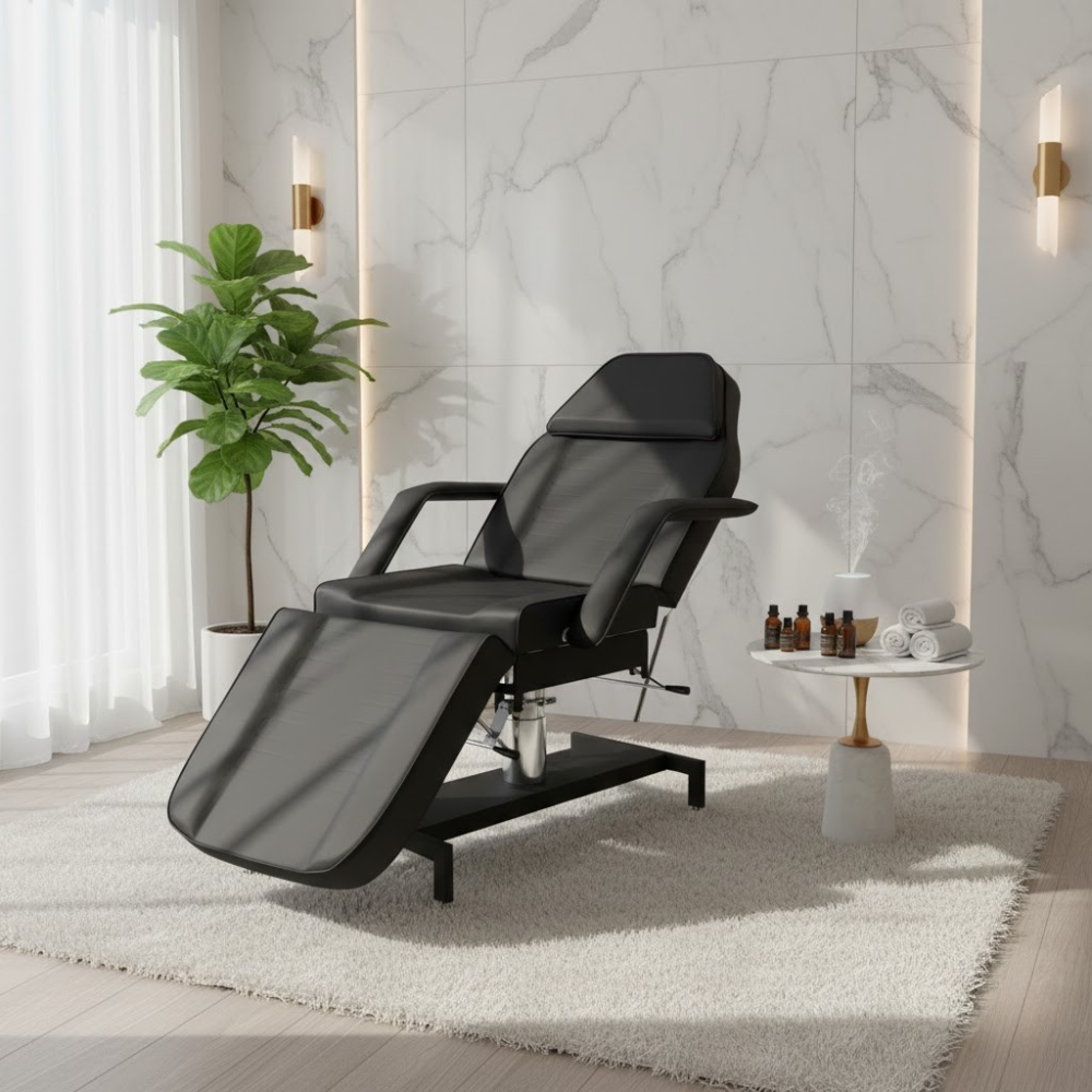 Description: ✦Heavy-Duty Metal Base with Hydraulic Lift: Smooth, easy height adjustments with a robust lift system that supports up to 350 lbs—ideal for frequent daily use. ✦360° Swivel Mechanism: Full rotational movement for effortless positioning and access during treatments. ✦Manually Adjustable Headrest & Footrest: Customize the recline to suit any service, from facials and waxing to lash extensions and more. ✦Built-In Face Opening with Removable Headrest Pillow: Offers client comfort during prone services, with the flexibility to add or remove the pillow as needed. ✦Removable Armrests: Easily detachable for procedures that require closer client access or a more streamlined profile.