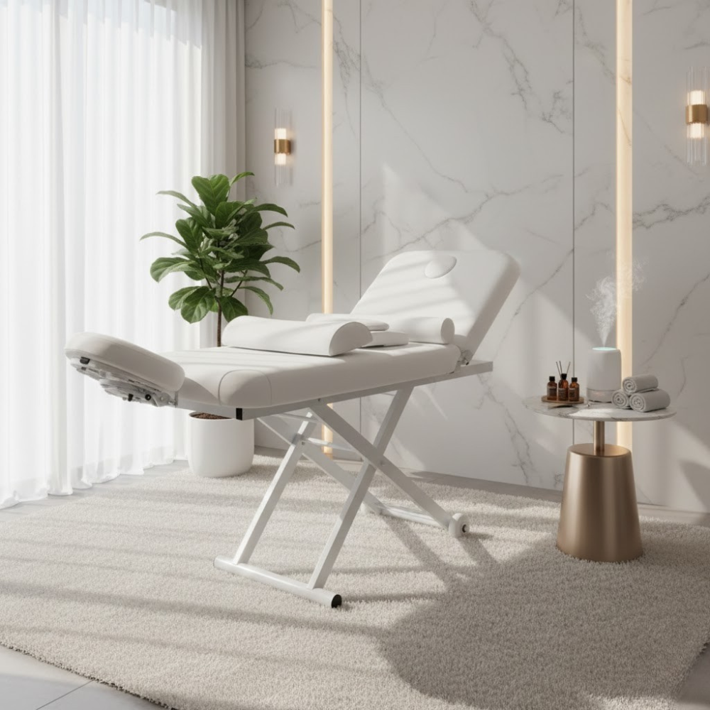 Description: ✦Manually Adjustable Headrest & Footrest: Easily customize angles for facials, waxing, lash services, and more—no tools required. ✦Built-In Face Opening with Removable Headrest Pillow: Offers ergonomic comfort during prone treatments; use with or without the headrest based on client preference. ✦Removable Armrests: Easily detach for unrestricted access during procedures or to suit individual client needs. ✦Integrated Storage Drawers: Convenient built-in drawers keep tools, towels, and products within arm’s reach—streamlining your workflow. ✦Sleek & Professional Design: Elevates the look of your treatment room while providing practical functionality every esthetician needs.