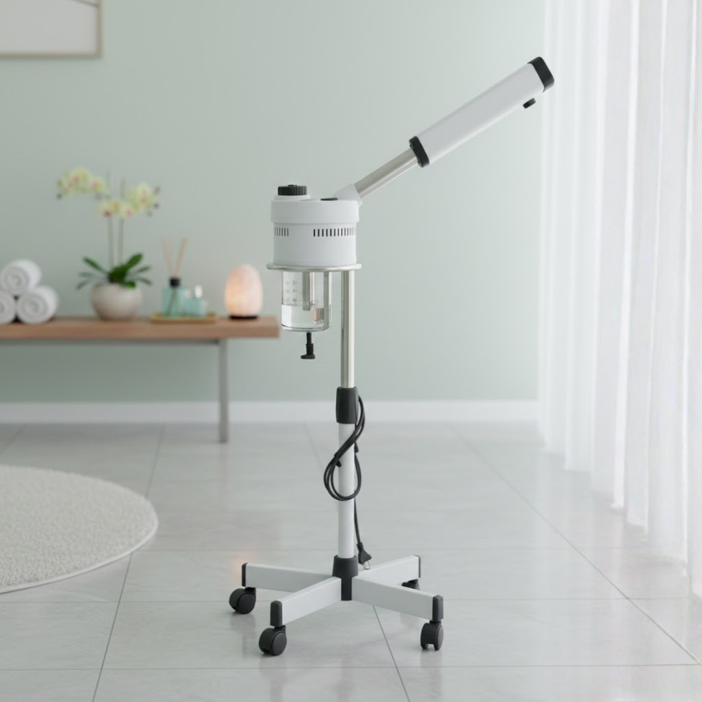 Description: ✦Auto Power-Off Feature: Built-in safety shut-off activates when the water level is low, protecting the unit and ensuring safe use. ✦Rotary Spray Arm: Flexible 360° rotation makes positioning easy, allowing targeted steam delivery for customized treatment. ✦Adjustable Height Pole: Modify the steamer height to fit any treatment bed or client setup with ease. ✦Rolling Stand Base: Smooth-gliding caster wheels offer effortless mobility—move the steamer exactly where you need it. ✦Durable, Clean Design: Sleek white and chrome finish matches any professional space while resisting stains and wear.