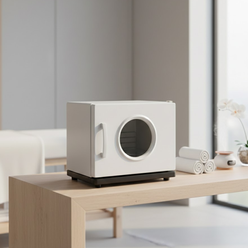 Description: ✦Holds Up to 12 Towels: Generous internal space accommodates up to 12 standard-sized facial or hand towels—ideal for continuous service. ✦Even Heating up to 180°F (82°C): Maintains consistent heat distribution to ensure all towels are perfectly warm without hot spots or overheating. ✦Built-In Ultraviolet (UV) Sterilizer: Sanitizes towels with UV light to help eliminate bacteria and maintain hygienic standards between clients. ✦Removable Drip Tray: Catches excess moisture for easy cleaning and a mess-free workstation. ✦Compact Countertop Design: Stylish white finish with a clear round window and sturdy base—fits seamlessly into any professional setup.