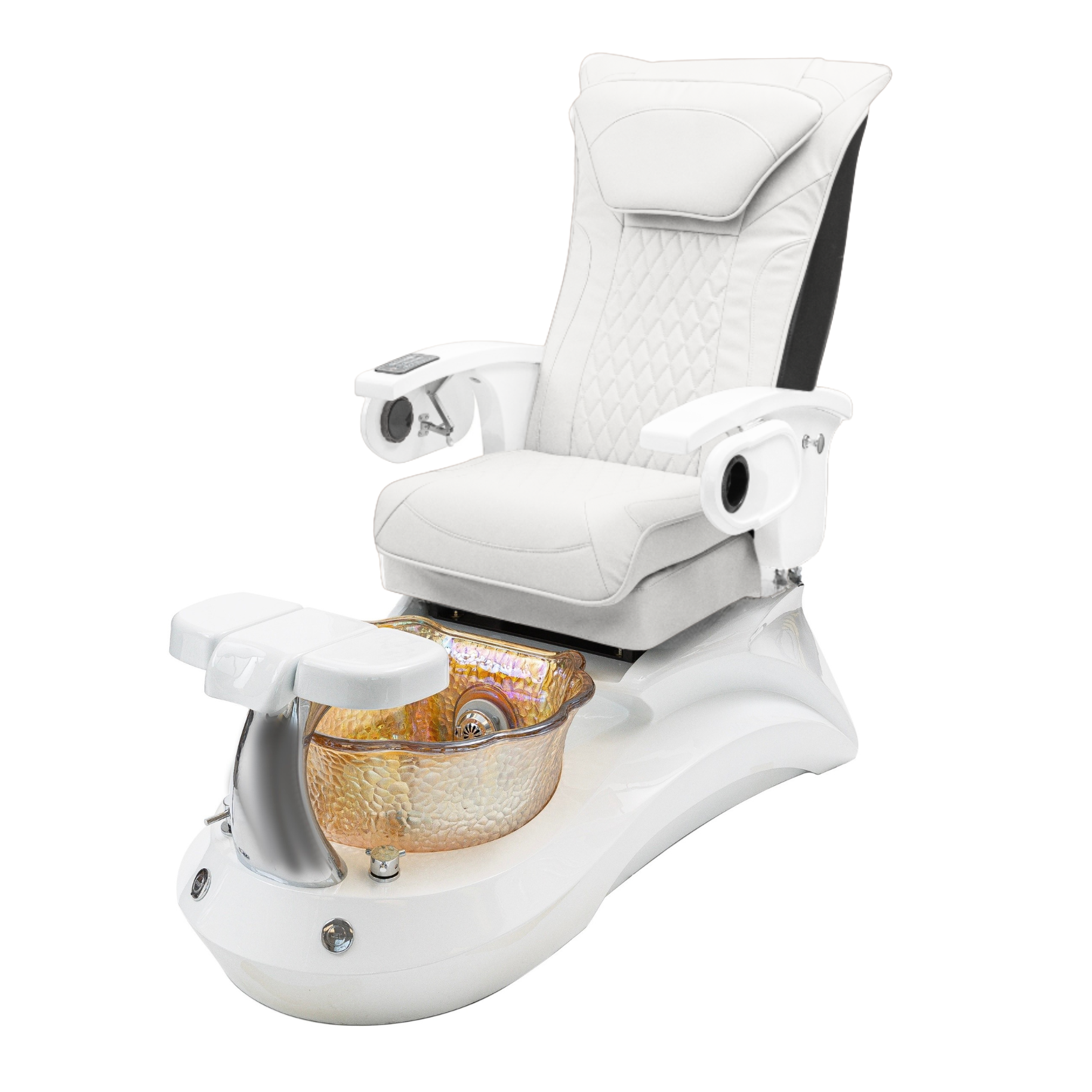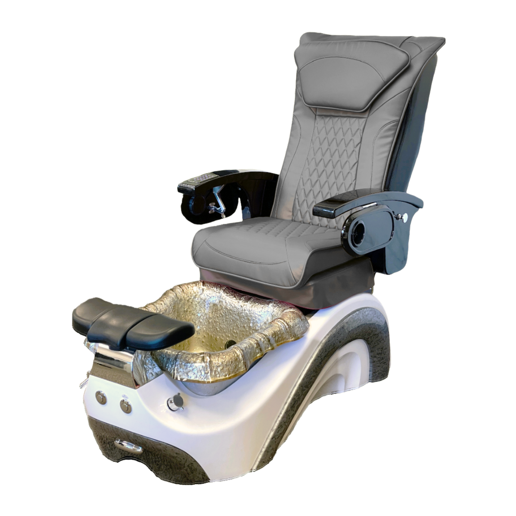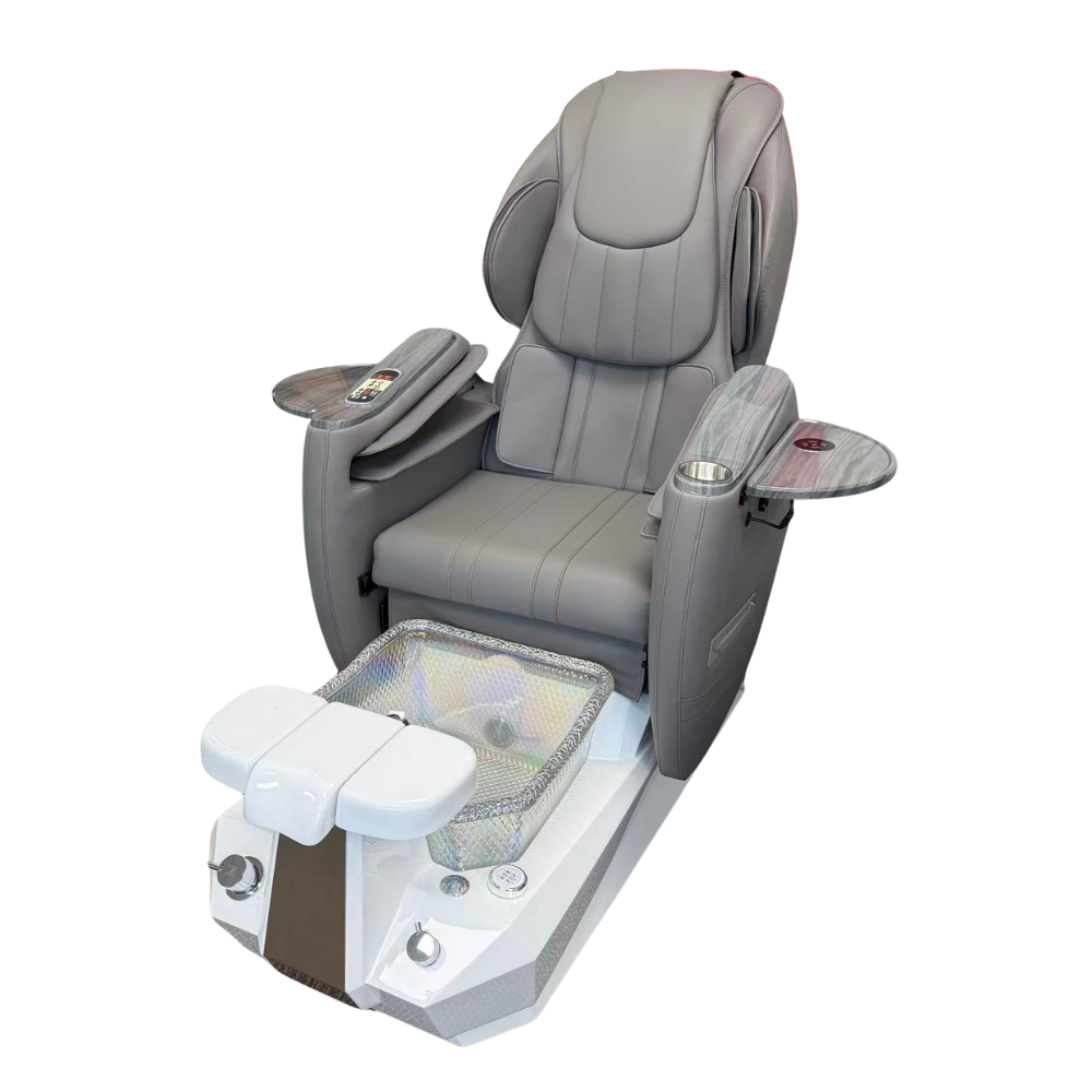 Description: This is a high-end pedicure spa chair designed for salons, spas, and luxury home use. It combines ergonomic comfort, full-body massage functions, and professional foot spa capabilities into one sophisticated unit. With modern controls, built-in technology, and a sleek leather finish, it offers both style and functionality for clients seeking a premium spa experience. Key Features 1. Ergonomic Massage Chair ✦Upholstered with high-quality leatherette for durability and easy cleaning. ✦Reclining backrest and adjustable seat position for customized comfort. ✦Built-in massage system with knead, tap, knock, shiatsu, and stretch functions. ✦Adjustable speed and width of massage rollers to fit different body types. ✦Multiple massage modes: Lower back, Upper back, or Full back coverage. 2. Digital Control Panel ✦Convenient armrest-mounted control panel for easy operation. ✦Power on/off and preset timer options (10, 20, or 30 minutes). ✦Manual control for position adjustments (upright, recline, footrest). ✦Mode selection for massage type and intensity. ✦LED indicators for active functions. 3. Pedicure Basin ✦Integrated foot spa tub with textured surface for maximum comfort. ✦Fitted with a disposable liner-compatible design for hygiene. ✦Adjustable footrest pads for both technician and client convenience. ✦Built-in jet massage system for a relaxing foot soak. ✦Front-mounted temperature and jet controls. 4. Modern Add-ons ✦Armrest side tables with faux wood finish for placing drinks, phones, or tools. ✦Integrated cup holder for extra convenience. ✦Wireless charging pad built into the armrest for smartphones and devices. ✦Soft LED lighting accents for a luxurious spa atmosphere. Specifications ✦Material: Premium synthetic leather, reinforced base, tempered basin ✦Massage Functions: Knead, Tap, Shiatsu, Knock, Back Stretch ✦Timer Options: 10, 20, 30 minutes ✦Chair Adjustments: Recline, upright, footrest positioning ✦Power Supply: Standard salon electrical connection