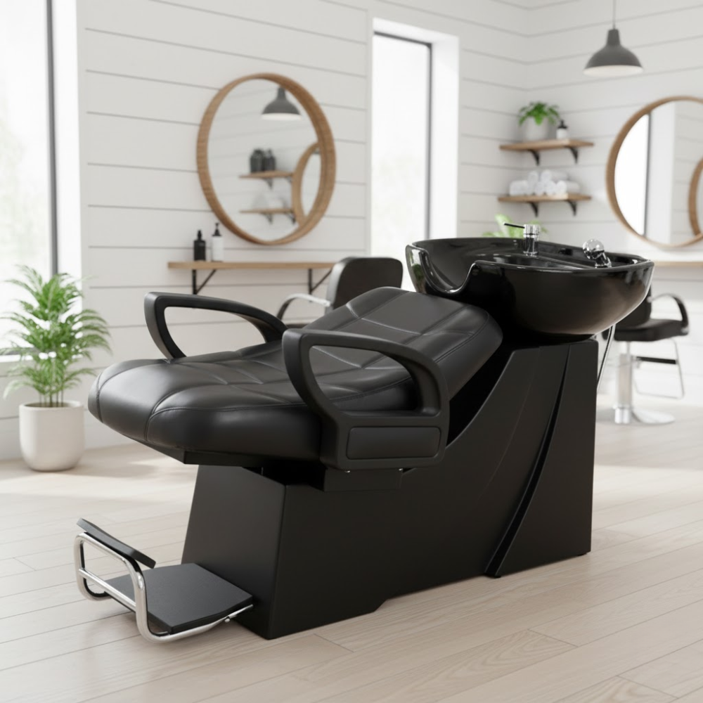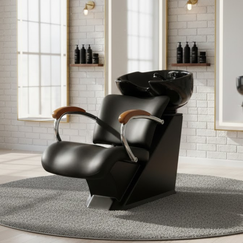 Description: ✦Seat Size (W x D): 18” x 21”: Spacious, cushioned seat with an angled backrest for client comfort during hair washing services. ✦CSA Approved: Certified to meet Canadian and U.S. safety and plumbing standards—ensuring professional-grade quality and compliance. ✦All Fixtures & Vacuum Breakers Included: Comes complete with faucet, sprayer, drain, and vacuum breaker for easy, code-compliant installation. ✦Sleek Black Ceramic Bowl: Elegant and durable, designed for both comfort and easy cleaning. Elegant Wooden Armrests A touch of warmth and style, combined with strong metal support for long-lasting use.✦Ergonomic Reclining Design: Features a fully padded seat and leg rest that reclines to offer maximum relaxation and client support.✦Sleek Armrest Accents:Modern curved armrests with polished detailing enhance both comfort and visual appeal. ✦1-Year Limited Warranty (Parts): Backed by a parts warranty for peace of mind and continued performance.