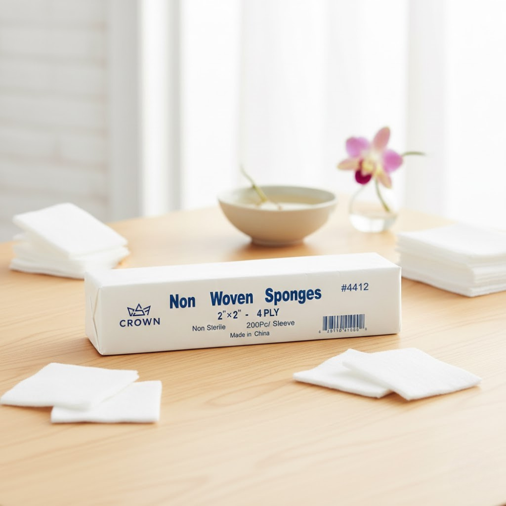 Description: ✦ Only $0.06 per piece – cost-effective for high-volume use✦12-Ply Construction: Extra thickness delivers exceptional absorbency and durability. ✦Hypoallergenic & Skin-Safe: Ideal for sensitive skin—safe and gentle for daily professional use. ✦Precut & Ready to Use: 4” x 4” pads come conveniently packaged—no trimming needed. ✦Multi-Purpose Utility: Excellent for facials, waxing prep, extractions, nail care, and more. ✦100 Pcs per Sleeve: Cost-efficient and hygienic bulk packaging.