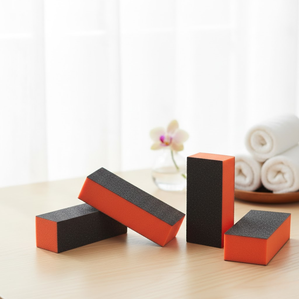 Description: $0.15 / pc ✦ Available Grits: 80/100, 100/180 ✦ Durable yet Disposable – ideal for one-time hygienic use ✦ Salon-Quality Finish – buffs, shapes, and smooths effortlessly ✦ Vibrant Orange Color – easy to identify among your tools